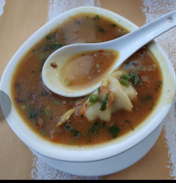 Traditional soup cooked with vegetables and MOMO (ravioli with minced meat or vegetables and herbs).